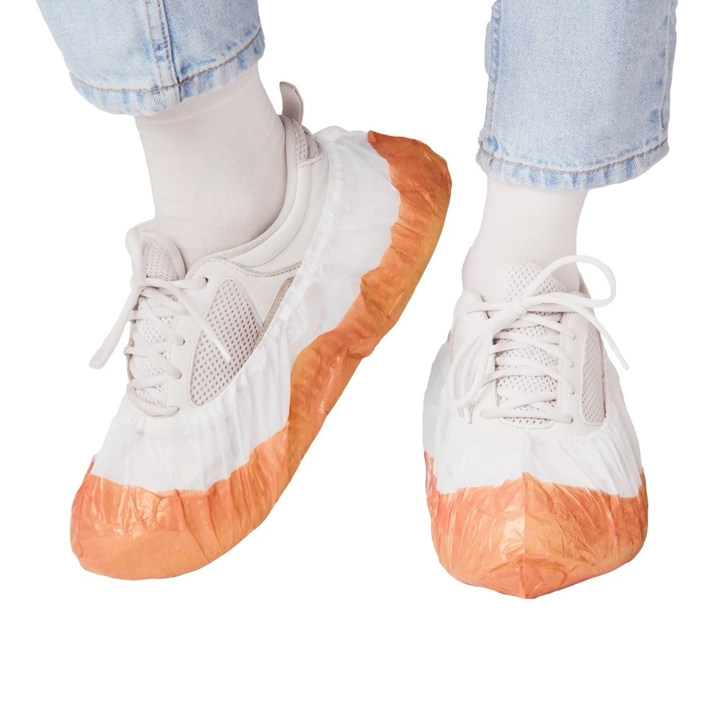 Бахилы медицинские одноразовые из ПНД с двойной подошвой – арт. ПНД-8/8/1р-Б-Ор. Бело-ор.№50/3000 |