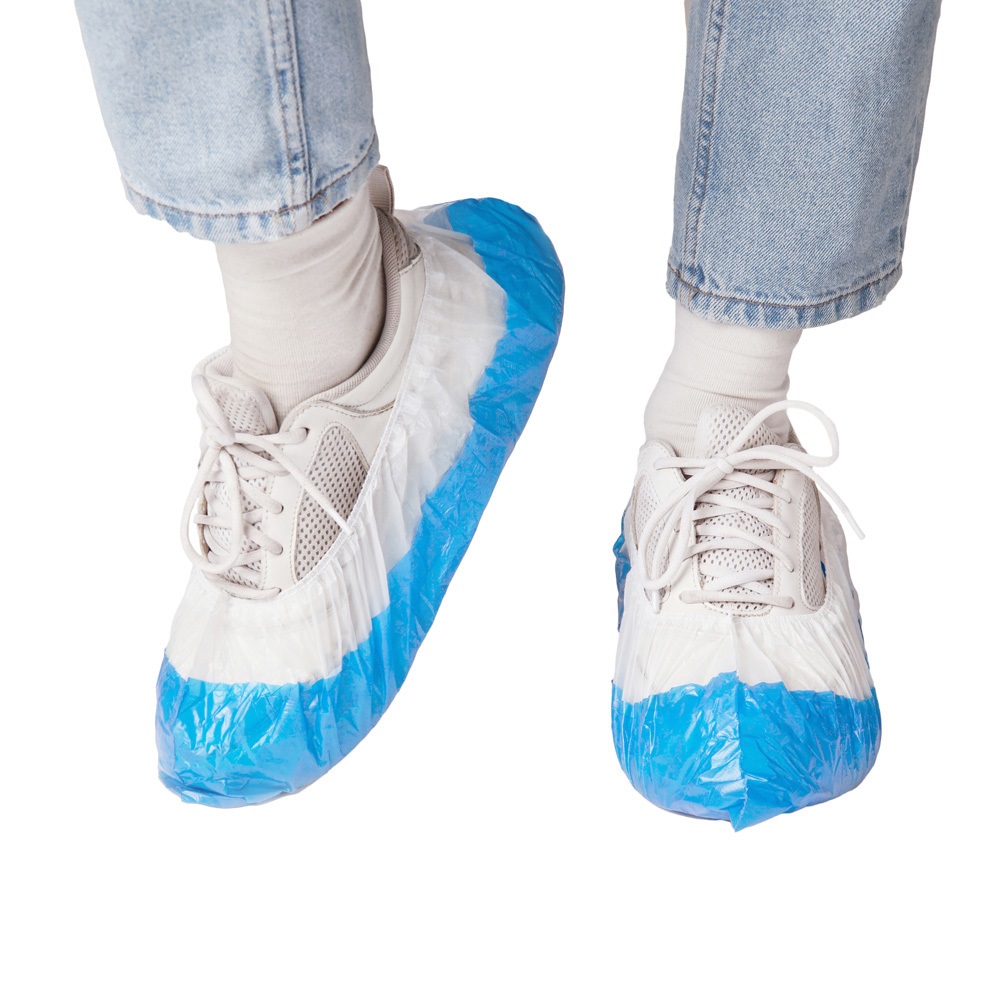 Бахилы медицинские одноразовые из ПНД с двойной подошвой – арт. ПНД-8/8/1р-Б-С. Бело-син №50/3000 |