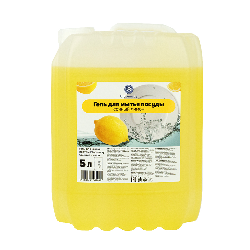 Гель для мытья посуды Bloomway, Сочный лимон, 5 л. №1/1 |