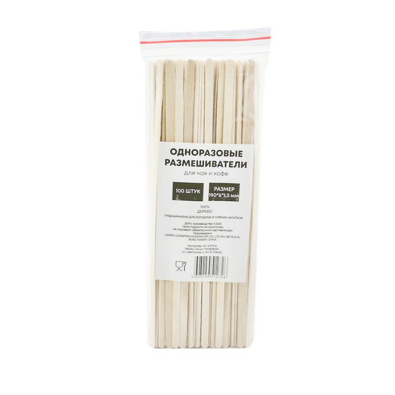 Одноразовые размешиватели для чая и кофе, 190х6х1,3, №100/10000 |