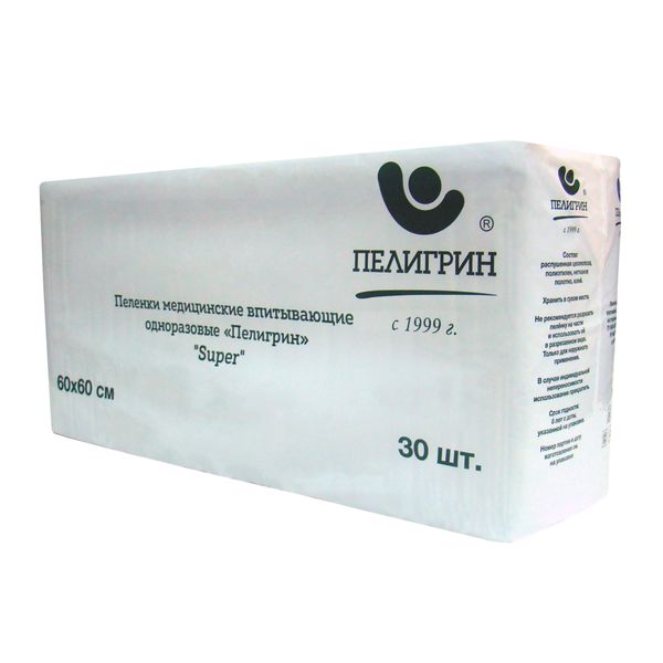 Пеленки медицинские впитывающие одноразовые, нестерильные Пелигрин, Super 60х60 см, 30шт. |