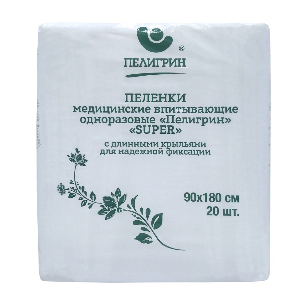 Пеленки медицинские впитывающие одноразовые, нестерильные Пелигрин, Супер 90х180 см, 20шт (1/4) |