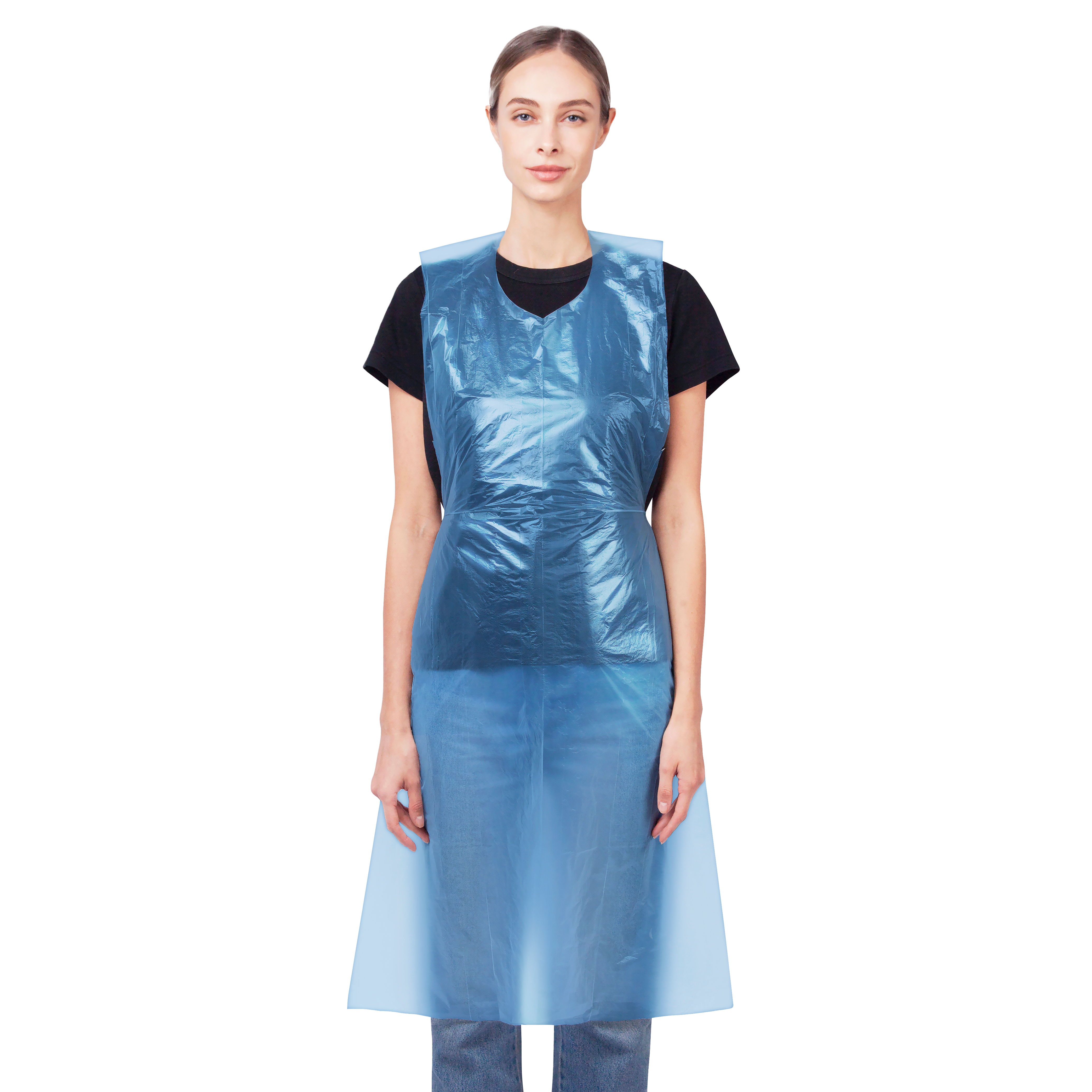 Фартук полиэтиленовый отлично защищает от загрязнений, не пропускает влагу. Одноразовый фартук легко раскрывается и надевается, при этом не ощущается при ношении.