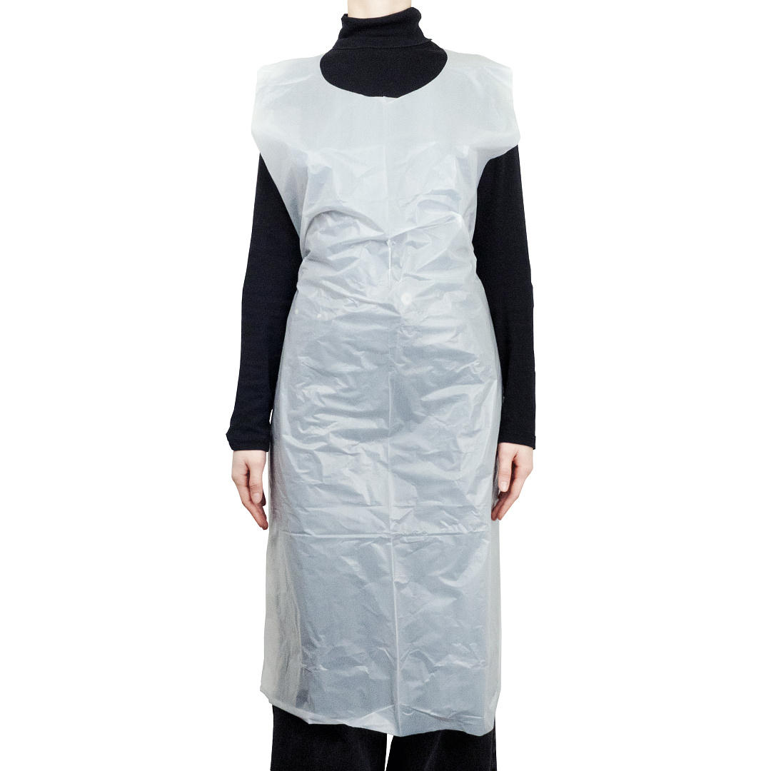 Фартук полиэтиленовый отлично защищает от загрязнений, не пропускает влагу. Одноразовый фартук легко раскрывается и надевается, при этом не ощущается при ношении.