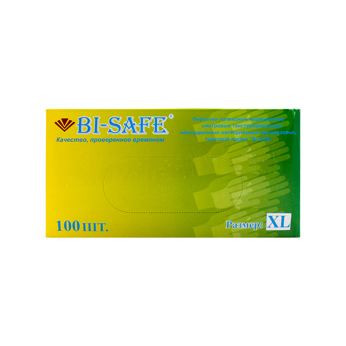 Перчатки латексные неопудренные текстурированные BI-SAFE , XL №50/500 |