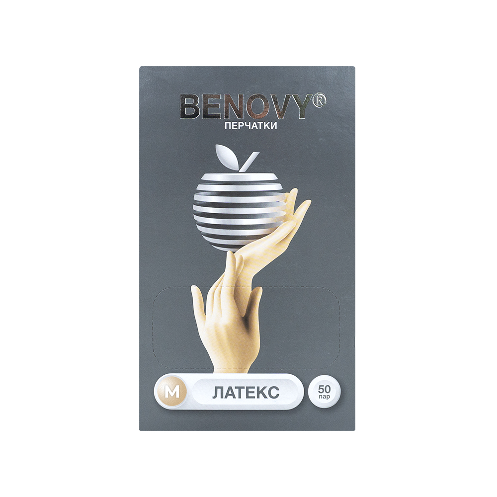 Перчатки медицинские диагностические (смотровые) одноразовые нестерильные BENOVY из натурального латекса текстурированные на пальцах неопудренные хлорированные (манжета с валиком), цвет: натуральный, размер: М, 100/500 |