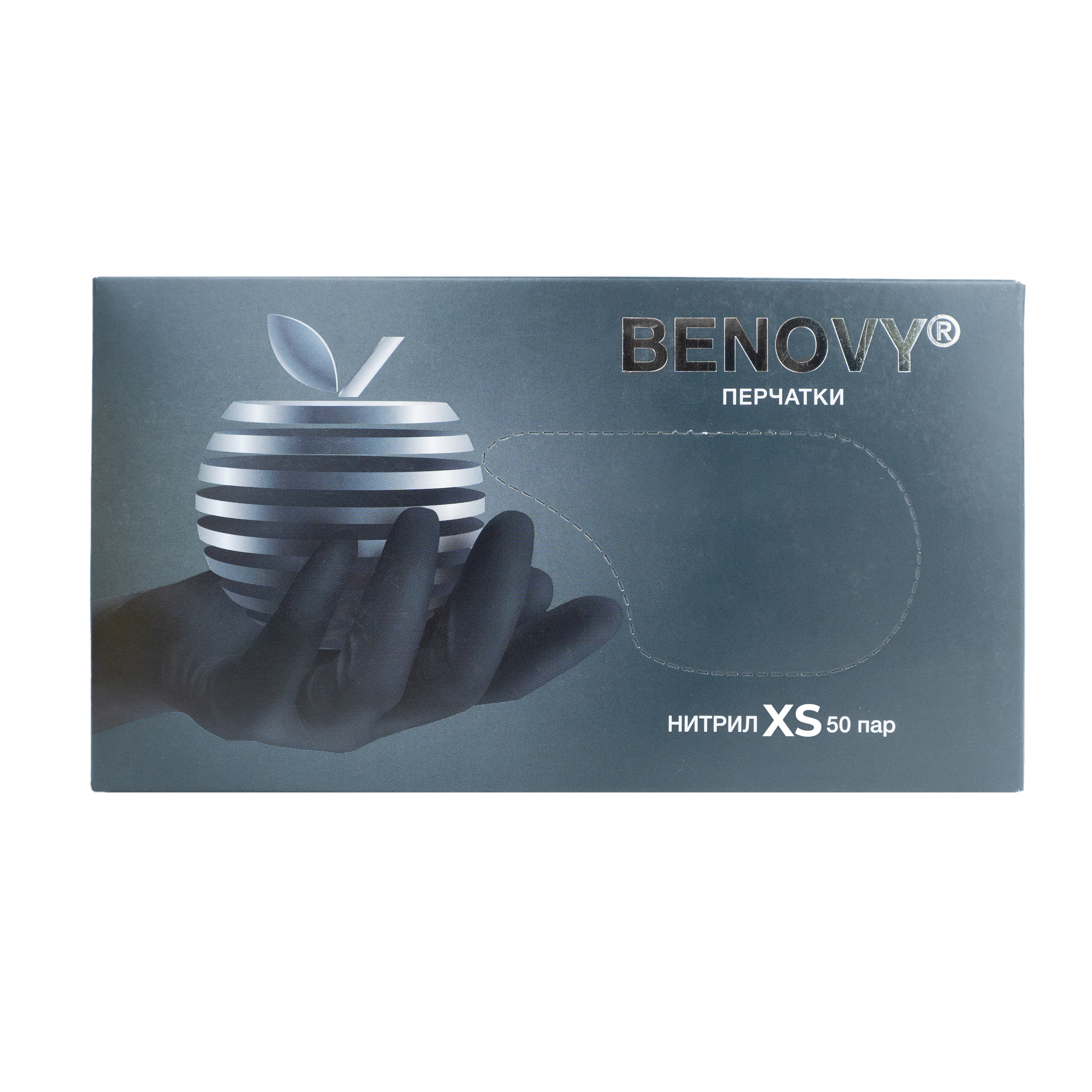 Перчатки медицинские диагностические (смотровые) одноразовые нестерильные BENOVY нитриловые текстурированные на пальцах неопудренные хлорированные (манжета с валиком), цвет: черный; размер: XS, 50/500 |