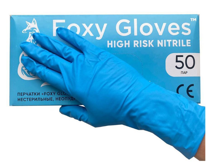 Перчатки FOXY-GLOVES, High Risk, голубые, S , медицинские(смотровые), одноразовые, нитриловые, нестерильные, неопудренные |
