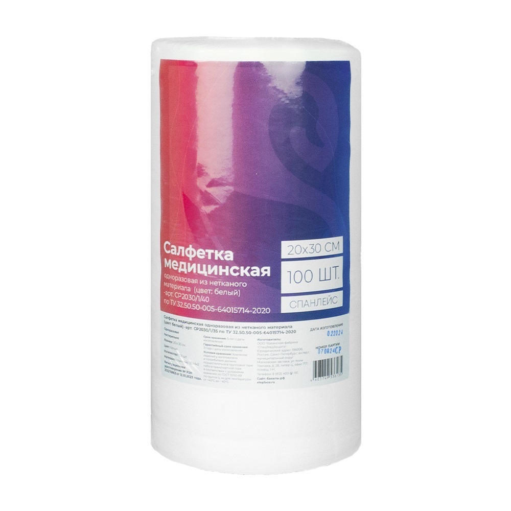 Салфетка медицинская, одноразовая из нетканого материала (цвет: белый)-арт.СР2030/1/40.№100/3200 |