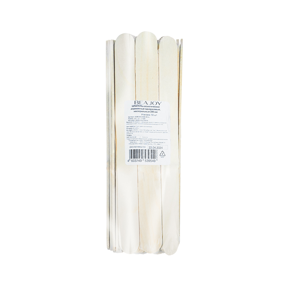 Шпатель косметический нестер. деревянный широкий BEAJOY 200х20х2,5мм №50/1750 |